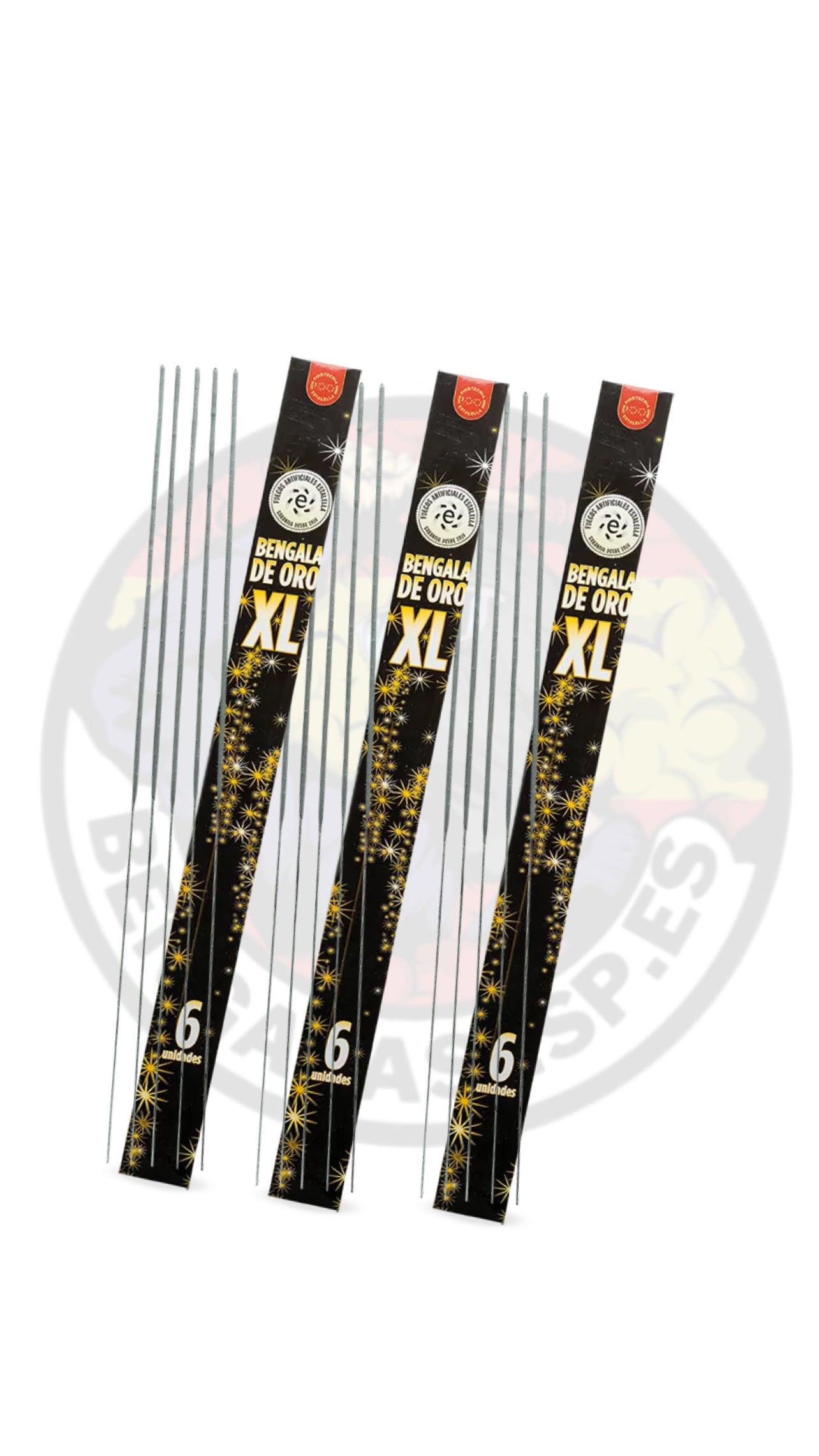 Paquete que contiene 6 Bengalas Oro XL de 2 minutos y medio de duración y una intensa chispa dorada. La bengala en total mide 70 cm!